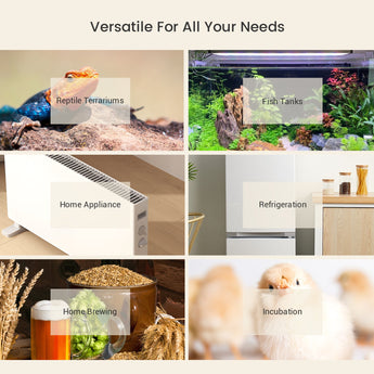 The INKBIRD C216T Plug-in Timer Thermostat supports 3 operating modes—Temperature mode, Cycle Time mode and Countdown mode. The Temperature mode can control the plug-in heating or cooling device and provides high and low temperature alarms, temperature calibration, and refrigeration delay functions; the Cycle Time mode supports the functions of cyclic operation of ON and OFF; and the Countdown mode supports the functions of countdown ON, countdown OFF, countdown ON & OFF. This product is widely applicable to intelligent temperature control in heating, cultivation, seedling growing, wooden shed, home living and more.