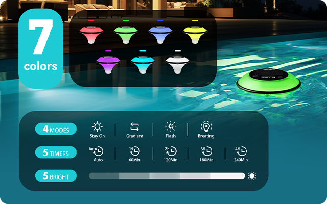 Smart Auto-On/Off Vibe Light Thanks to light-sensing technology, the smart vibe light automatically turns on at night and off during the day. It offers 7 colors, 4 lighting modes, 5 brightness levels, and 5 timers to choose from to meet your various needs.