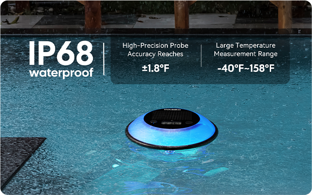 All-Weather Precision, Any Water This IP68 waterproof wireless pool thermometer reliably monitors water temperatures from -40°F to 158°F (-40°C to 70°C) in all conditions, even in stormy weather, making it suitable for swimming pools, hot springs, hot tubs, and small ponds.
