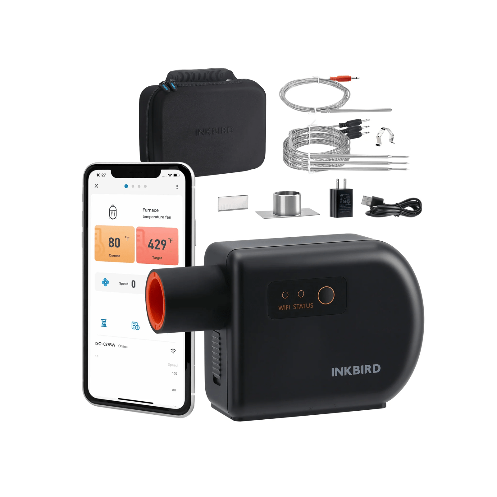 The intelligent fan will automatically stop/start blowing according to the grill lid status for maximum efficiency and power savings. Plus, temperature alarms and times could avoid over or undercooking for worry-free grilling.