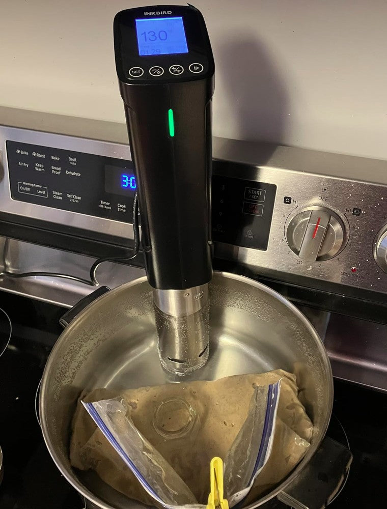 Sous vide is a cooking method where you seal food in a bag in a pot of water. The INKBIRD machine controls the water temperature precisely, so your food will never overcook. It's basically the easiest way for us to get restaurant-quality results - like a steak or a chicken breast that's tender and juicy from edge to edge - every single time. Want to learn more? Check out: What Is Sous Vide Cooking?