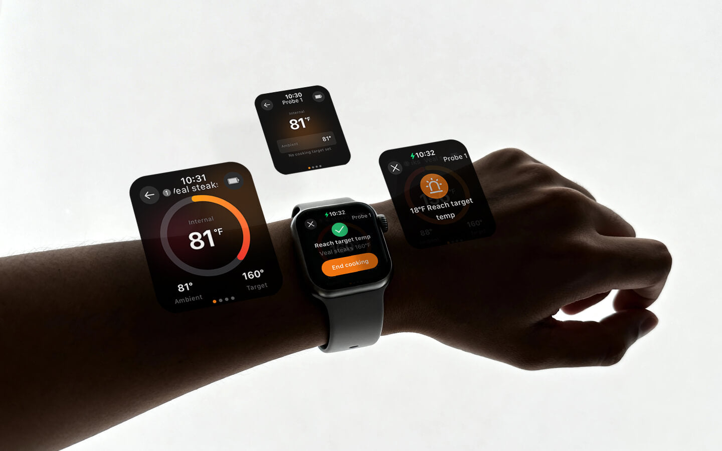 Få temperaturer og madlavningsstatus i realtid direkte på dit Apple Watch. Løft dit håndled for at se, hvordan din madlavning skrider frem, uden at være bundet til grillen, hvilket giver dig den ultimative frihed til at mestre hvert måltid.