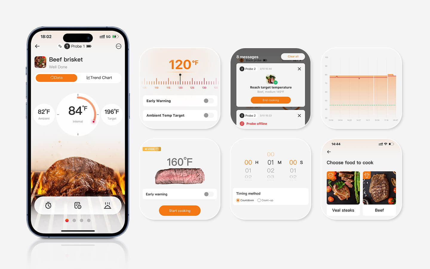 - Måltids-temperaturalarm: Advarer dig, når maden når den indstillede temperatur.