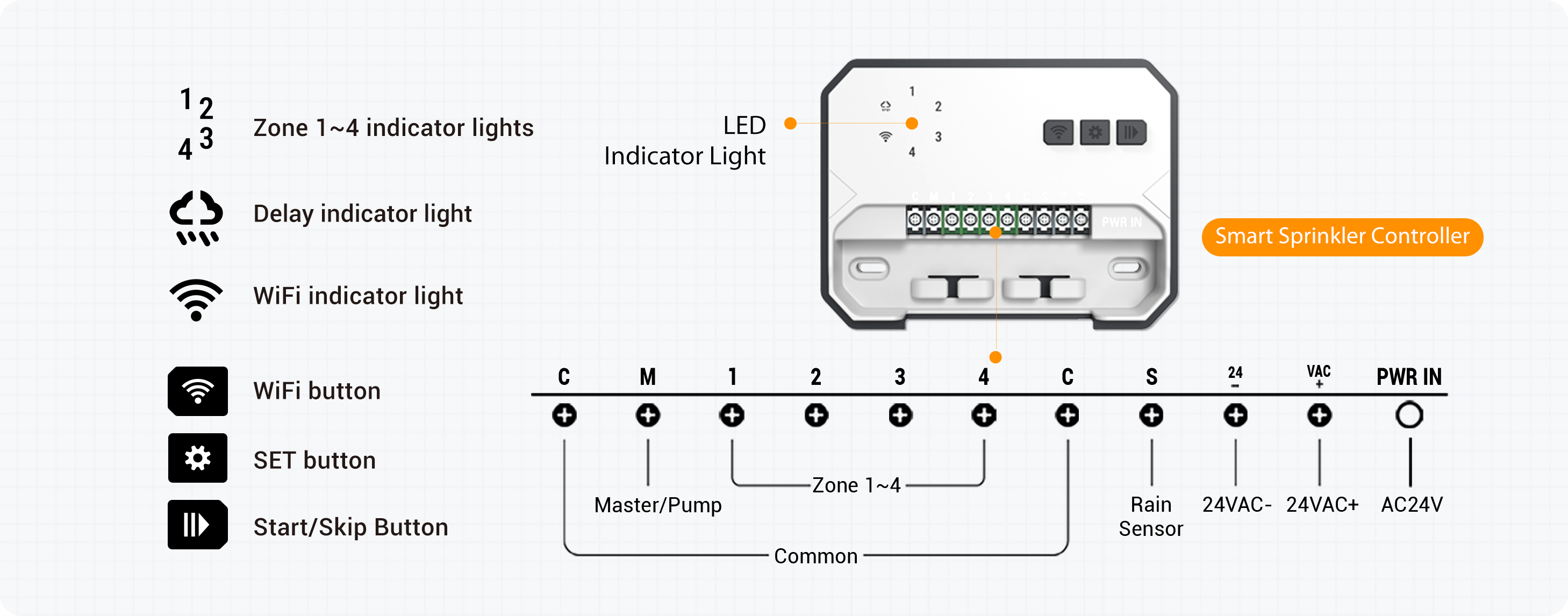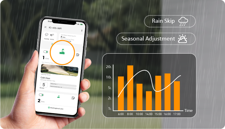 ● Smart watering features like rain skip and seasonal adjustment capabilities