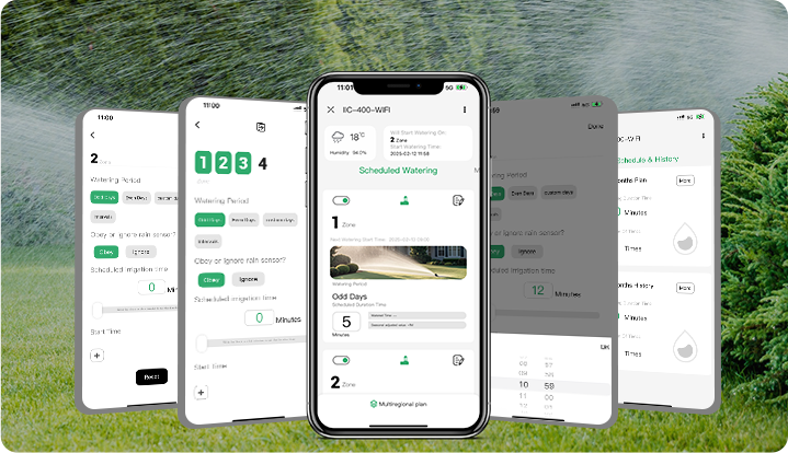 ● 4 cyclic watering modes, including days of week, odd days, even days, and interval days