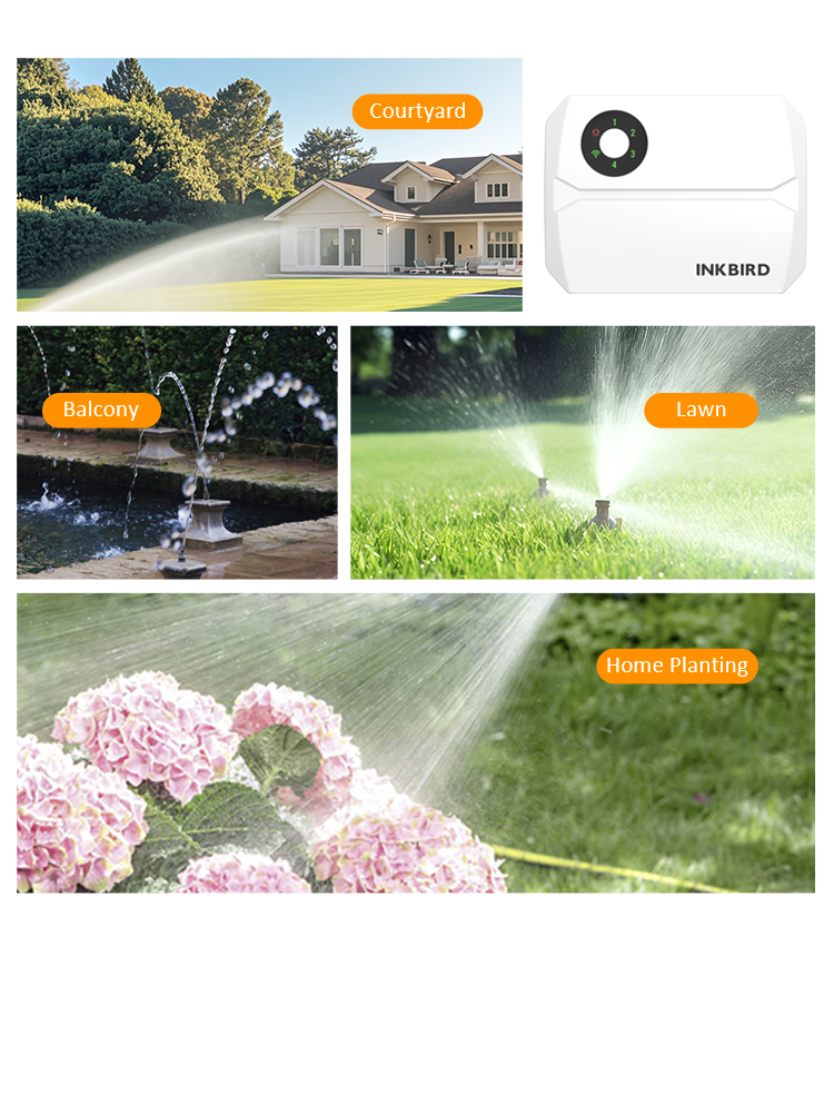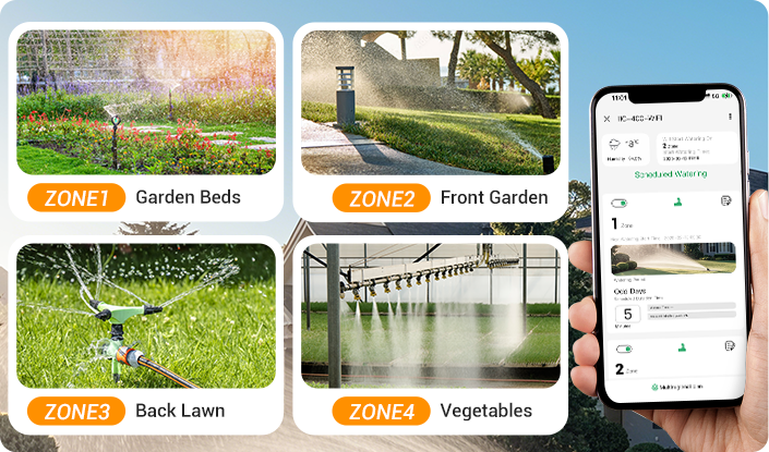 ● 4-zone irrigation management with 6 independent start times for watering