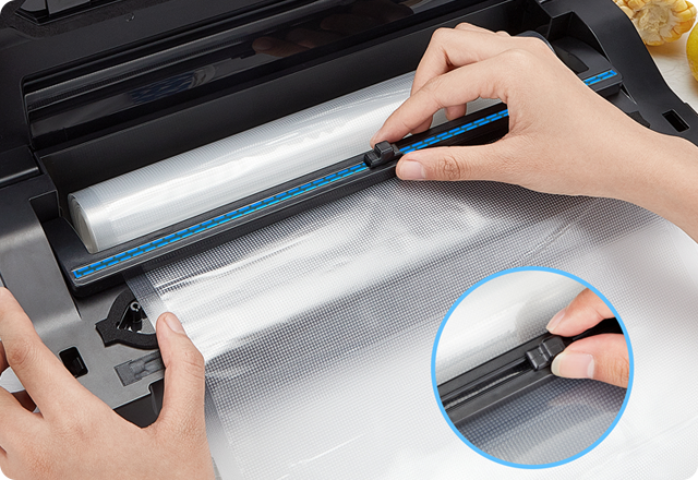 ● Cortador incorporado y cámara para rollos de bolsas para almacenamiento y corte de bolsas, conveniente de usar