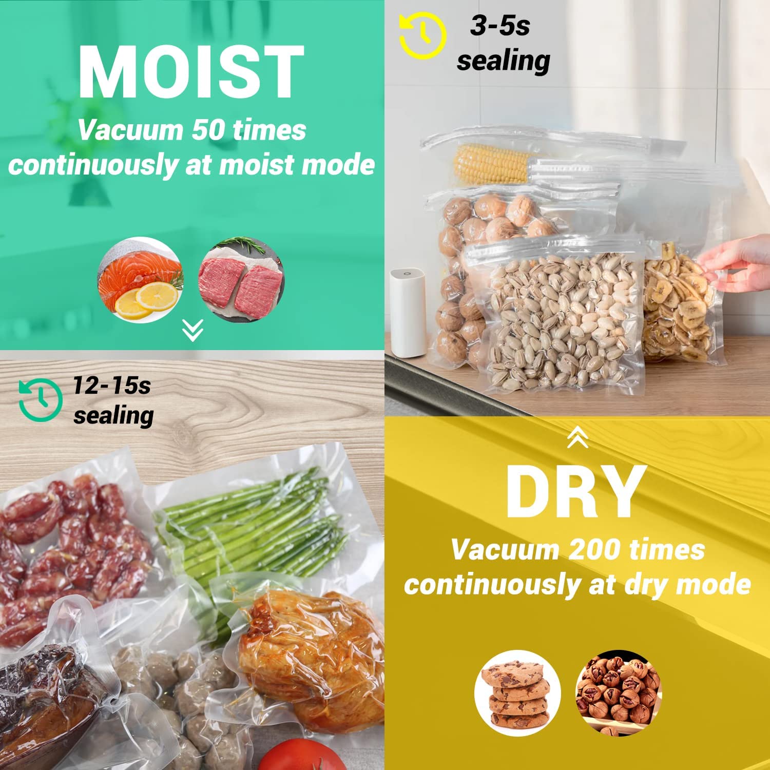 ● Cuatro modos de sellado: Seco/Húmedo/Pulso/Canister, adecuado para todo tipo de conservación de alimentos