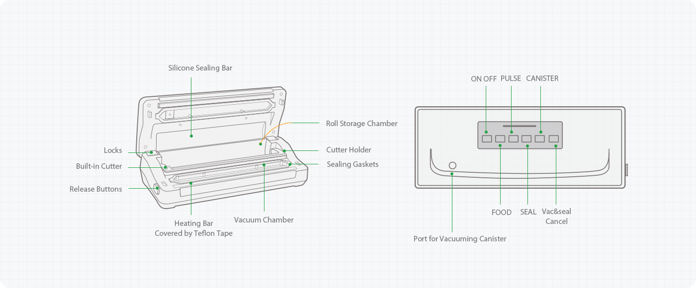 ● Seco/Húmedo/Sellado/Pulso/Canister, 5 modos para todo tipo de alimentos