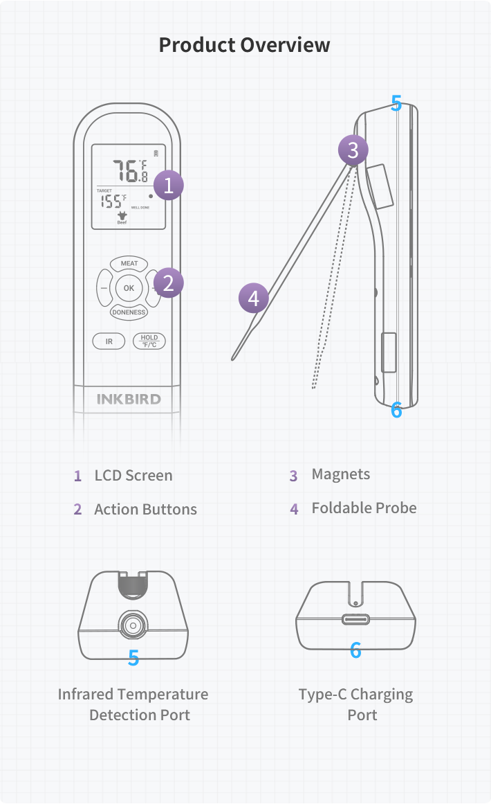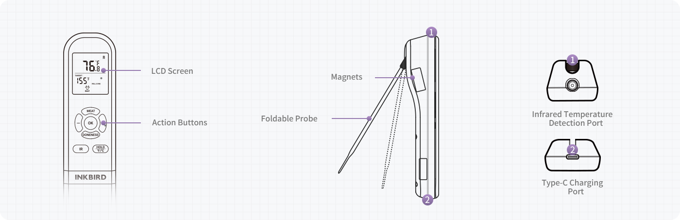 Multi-Functional Thermometer IHT-1M *1, USB-C Charging Cable *1, User Guide *1 |