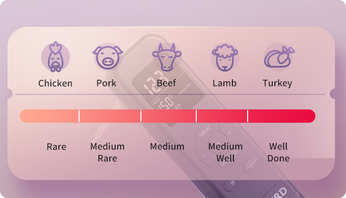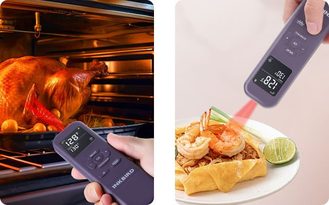 Il n'est pas recommandé de mesurer la température interne des aliments en utilisant la fonction infrarouge. À la place, vous pouvez l'utiliser pour vérifier la chaleur de surface d'objets comme les poêles ou les grils avant la cuisson.