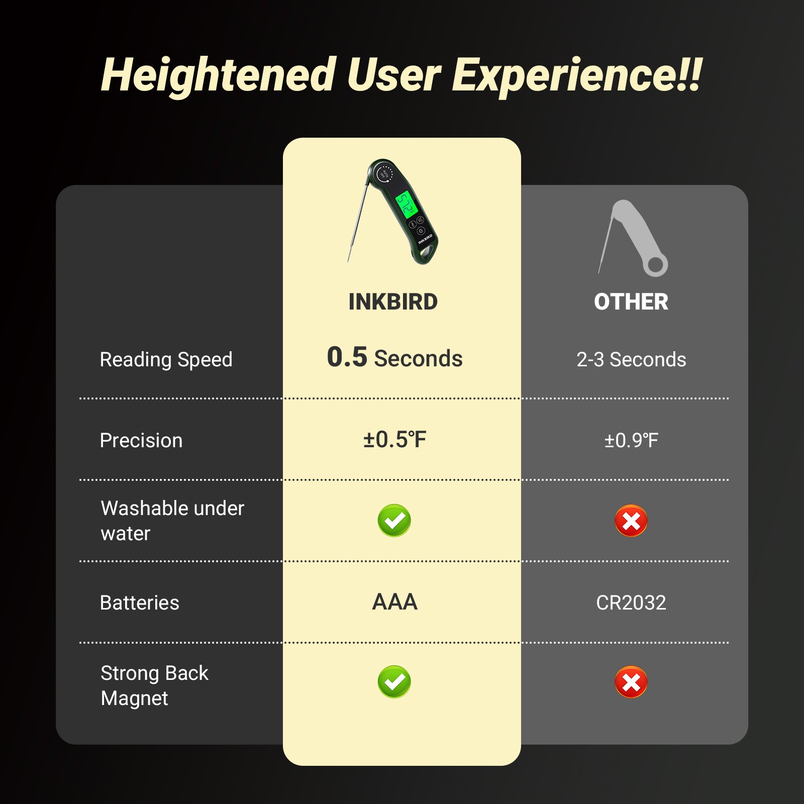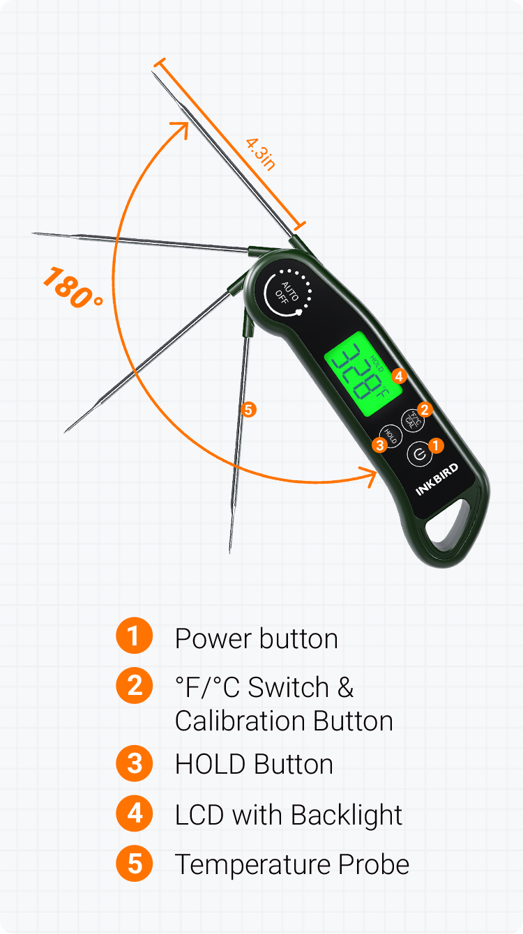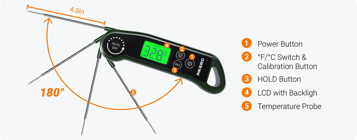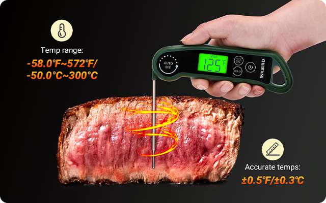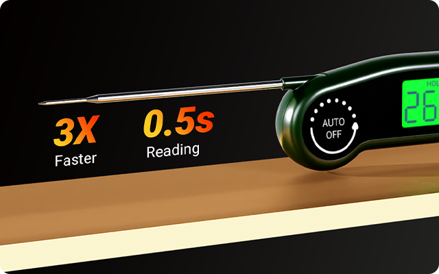 Testé en laboratoire, ce thermomètre à viande à lecture instantanée est précis à ±0,5°F/±0,3°C, fournissant des lectures de température fiables.