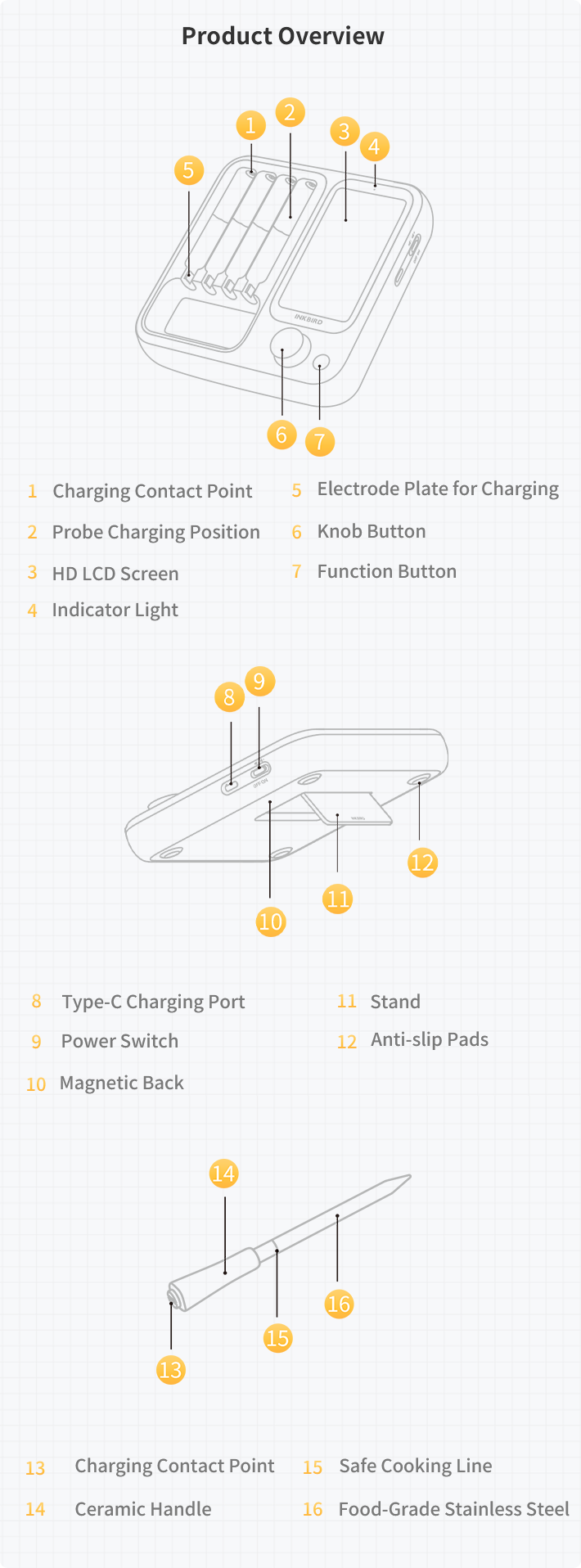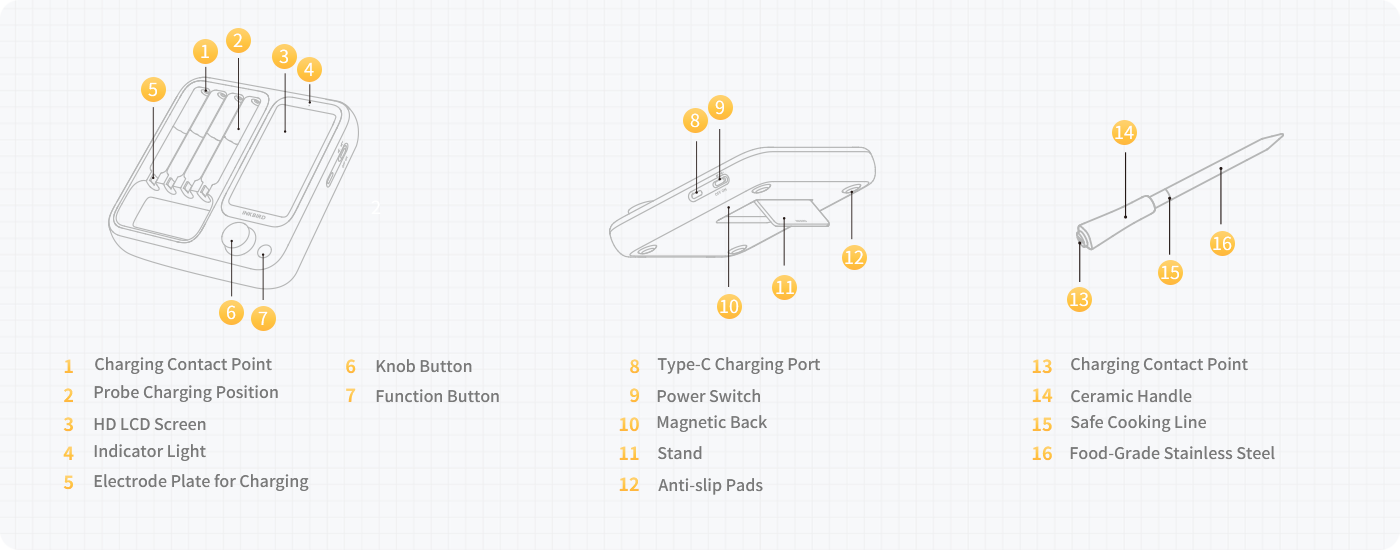 | Package Content: | Charging Base *1, Wireless Probes *4, USB Type-C Charging Cable *1, Quick Start Guide *1, User Manual *1 |