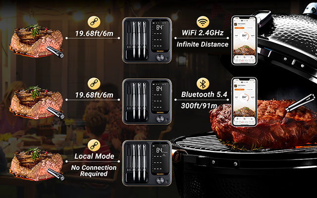 Termometro per carne WiFi e Bluetooth Multi-Modalità, Multi-Sonda INT-14-BW