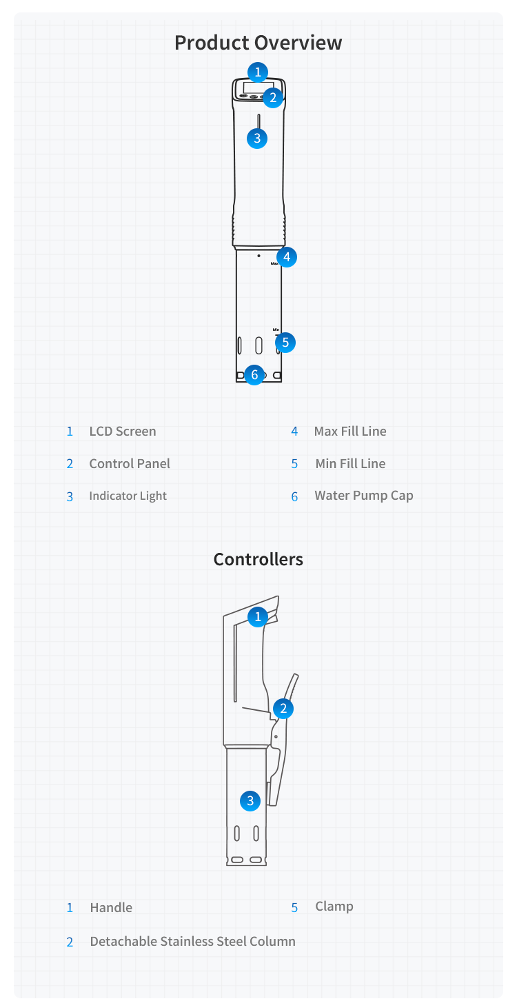 L'ISV-100W ha un intervallo di temperatura da 77℉ (25℃) a 210℉ (99℃), offrendo un controllo preciso della temperatura per varie esigenze di cottura sous vide.