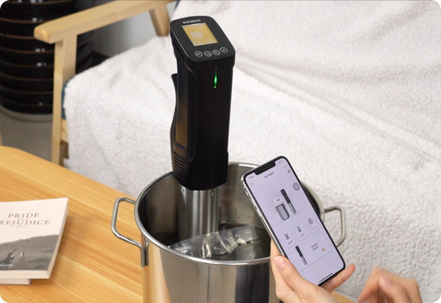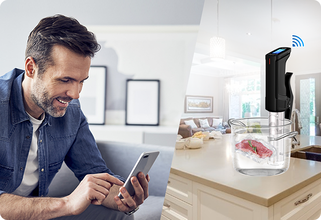 Monitora e controlla la cottura da remoto con la tua app mobile. Condividi l'accesso al cuocitore sous vide con i tuoi cari per pasti collaborativi.