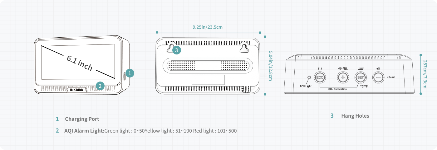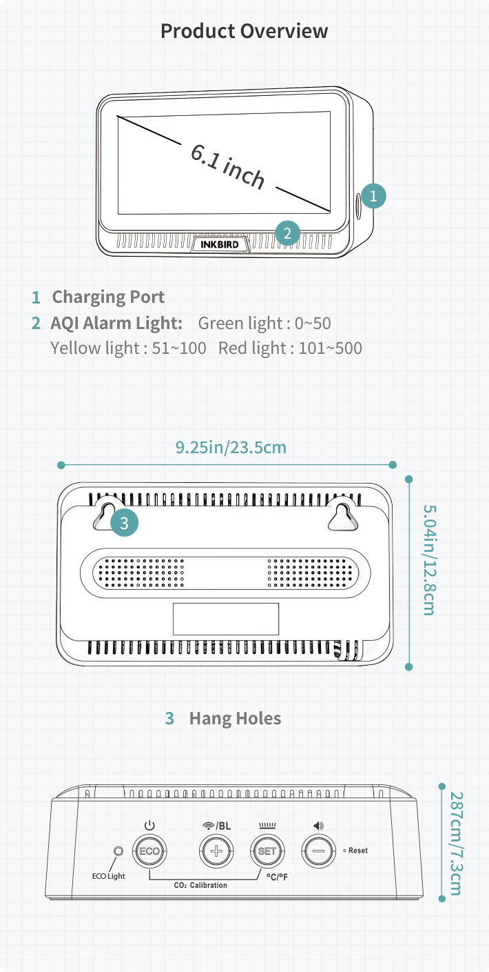 | Package Contents: | Air Quality Monitor IAQM-129-W *1, USB Charging Cable *1, User Manual *1 |