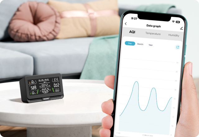 Stap 3: Houd de metingen van de omgevingsluchtkwaliteit in de gaten op schommelingen na het aanbrengen van aanpassingen. Als hoge niveaus aanhouden, overweeg dan professionele begeleiding te zoeken of verder onderzoek naar mogelijke oorzaken van luchtkwaliteitsproblemen.