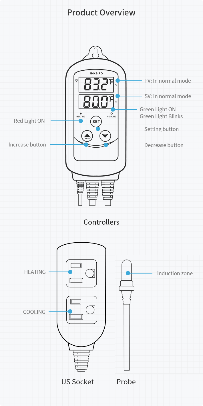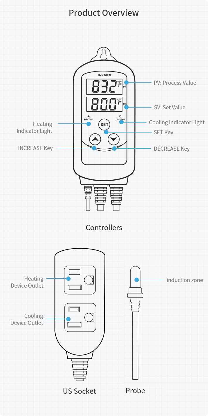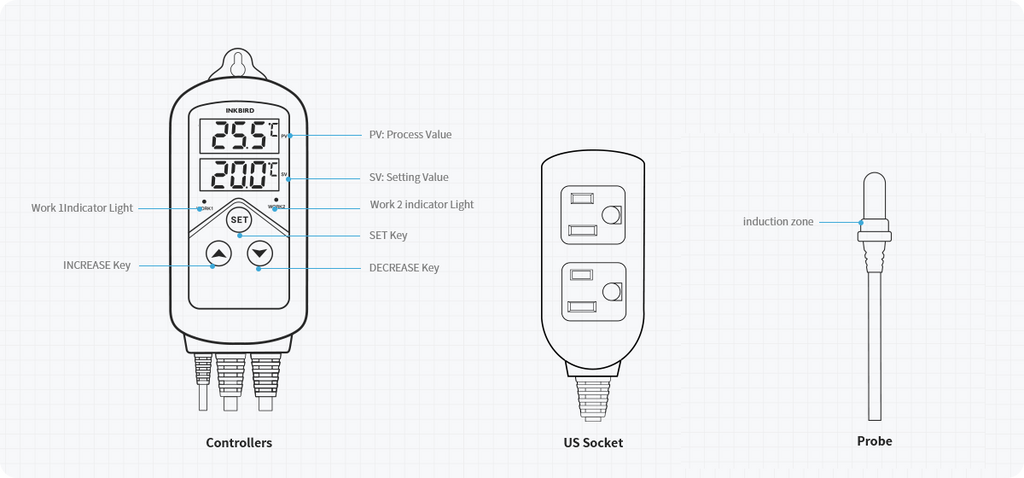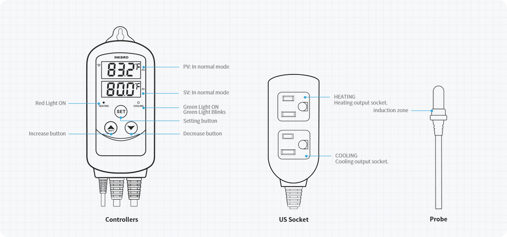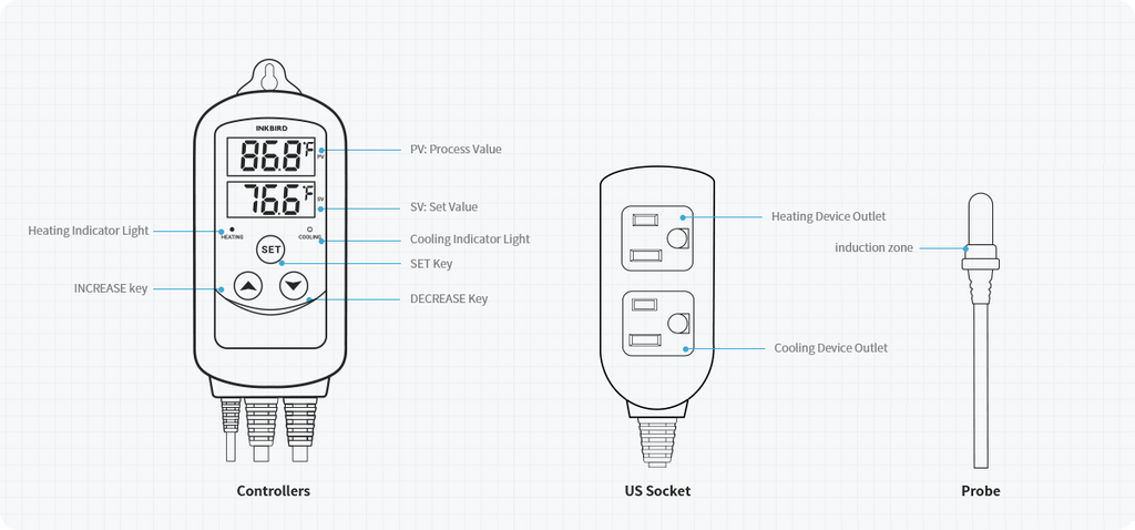 | Temperature Control Range: | 20~35℃/68~95℉ | -50~99°C/-58~210°F | -50~99°C/-58~210°F | -40~100℃/-40~212℉ |