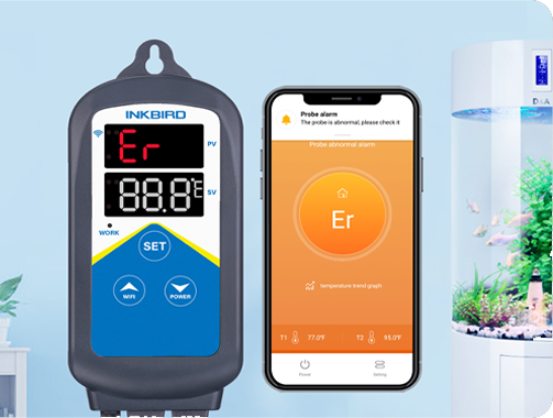 Natuurlijk is het hebben van een controller een extra beschermingslaag voor uw aquarium. U kunt de realtime aquariumbewaking intuïtief via het scherm volgen en een alarm ontvangen wanneer de temperatuur abnormaal is. Neem de ITC-306A als voorbeeld. Wanneer wordt gedetecteerd dat de temperatuur te hoog is, zal het onmiddellijk een alarm laten horen en automatisch de verwarmingskracht uitschakelen.