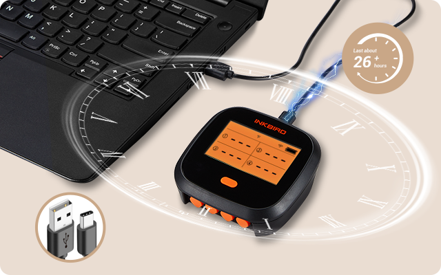 Uitgerust met een 2000mAh lithiumbatterij, kan deze WiFi BBQ-thermometer ongeveer 26 uur meegaan op een volle lading, zodat je niet constant droge batterijen hoeft te vervangen, wat handig en milieuvriendelijk is.