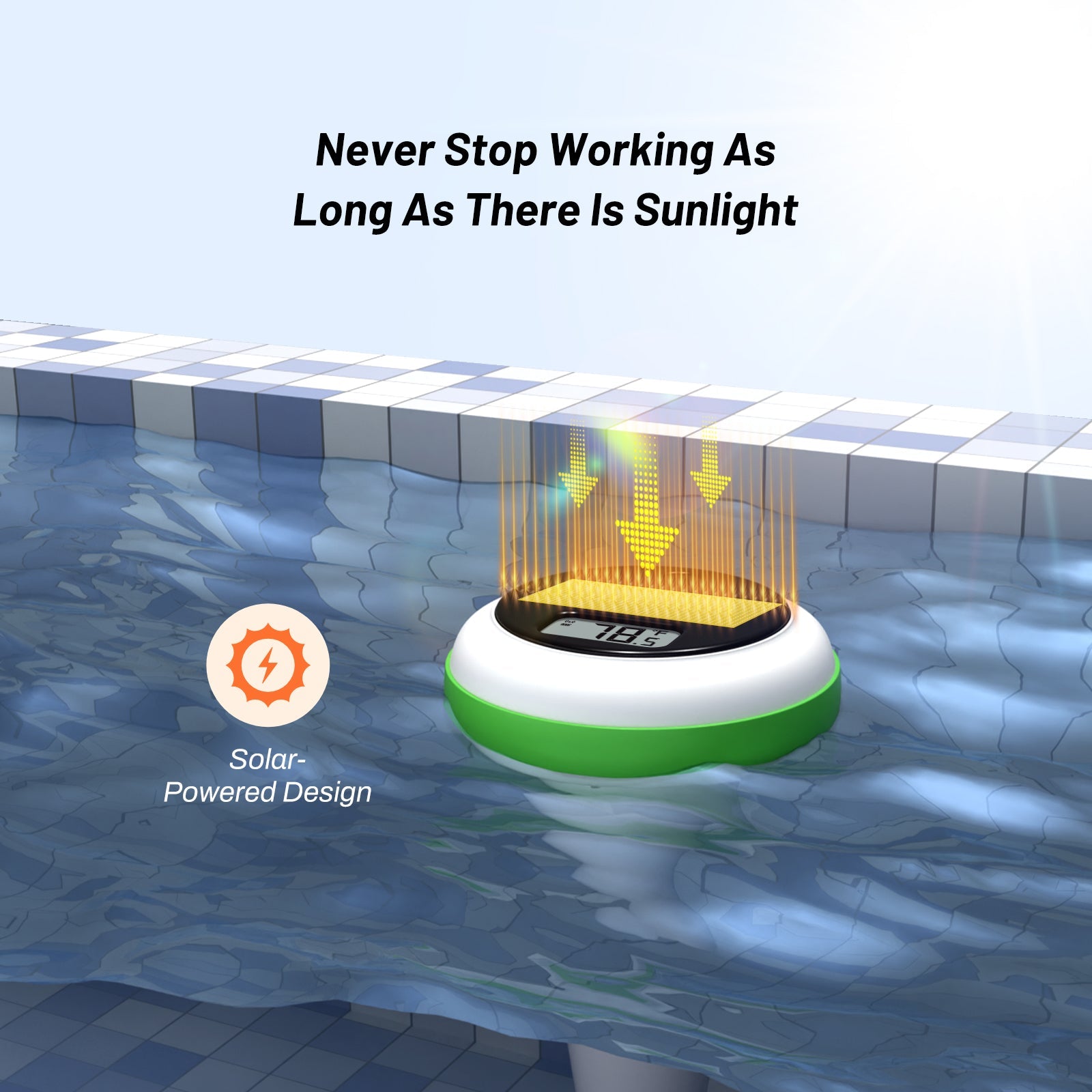Termómetro de piscina alimentado a energia solar, sustentável e amigo do ambiente