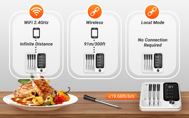 4 Sondas, 3 Modos, 0 Limites Termómetro de Carne Inteligente Sem Fios