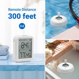 【Distância Máxima de Ligação 300 Pés】A distância máxima de ligação entre o termómetro da piscina e a gateway é de 300 pés. Também pode verificar a leitura da temperatura através da APP quando estiver fora de casa.